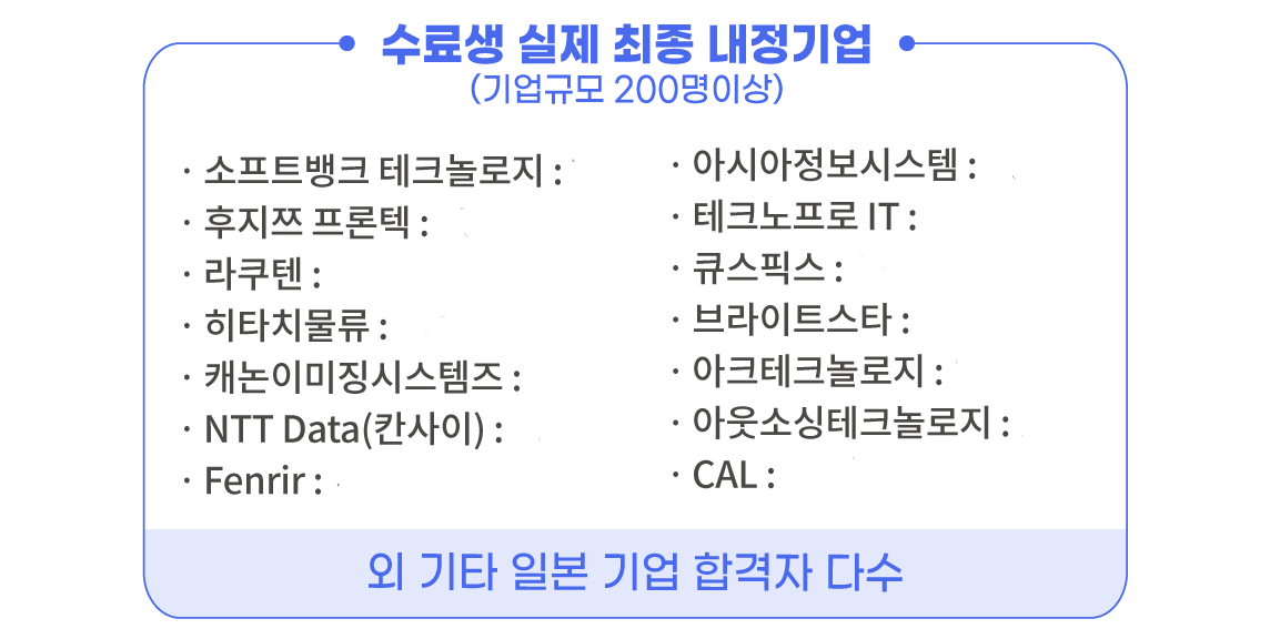 • CSI사 외에도 일본 및 국내 IT취업까지 모두 지원합니다.