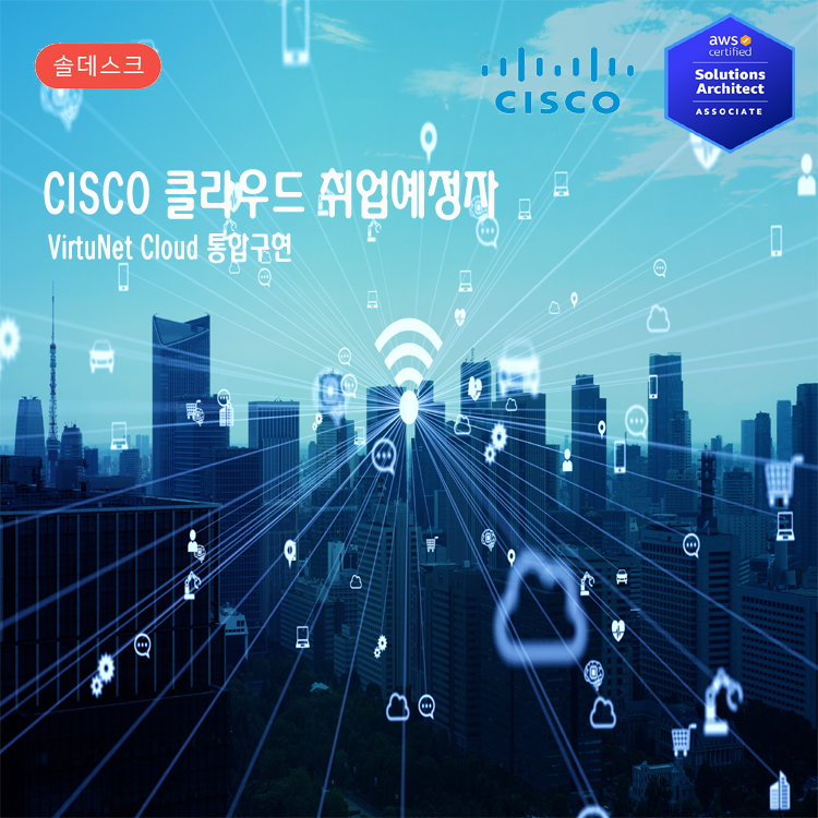 솔데스크 교육의 강점은 무엇인가요? | CISCO AWS 클라우드 ( VirtuNet Cloud ) [비전공자도 쉽게 다가갈 수 있는 눈높이 교육으로 기초부터 심화까지] 많은 비전공 교육생들께서는 걱정하지 않으셔도 됩니다!! 솔데스크 클라우드 교육의 비전공자 비율은 68%정도로 전공자 보다 높은 비율로서, 강사님들께서 기초부터 차근차근 쌓아올릴 수 있도록 교육을 진행하고 있기 때문에, 교육생들의 엔지니어로서의 의지를 갖고 오시면 충분히 엔지니어로서의 꿈을 실현하실 수 있습니다. [그날 배운 강의는 그날 복습하자!] 당일 교육내용을 녹화하여 교육생들이 다시 볼 수 있게끔 녹화본을 공유하고 있습니다. 언제든지 복습이 가능하기에 놓친 부분과 이해가 가지 않는 부분을 반복하여 학습하실 수 있습니다. | |||||||||||||||||||||||||||