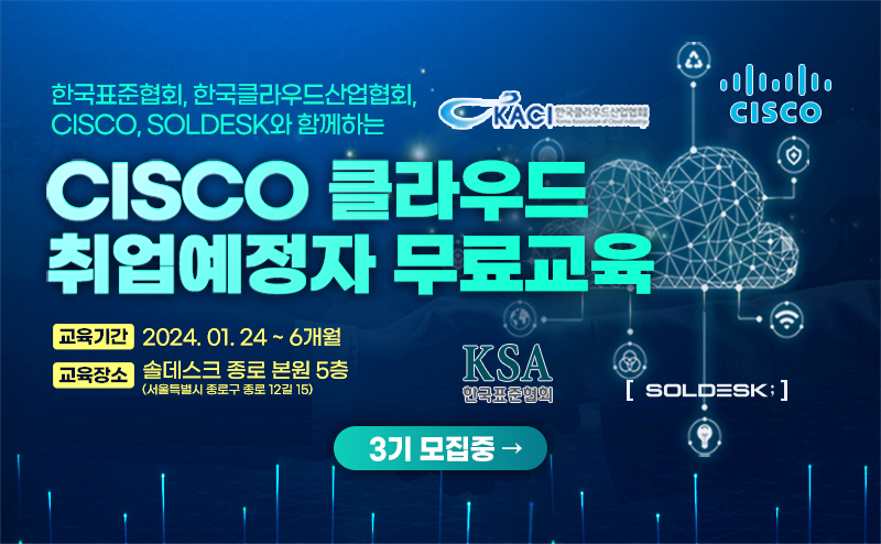 시스코코리아가 한국표준협회, 솔데스크, 한국클라우드산업협회와 함께 <시스코 클라우드 통합 > 교육을 진행하오니 많은 관심을 바랍니다.