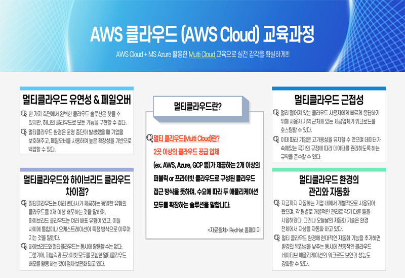 타학원처럼 일반클라우드 교육이 아닌 아마존 AWS교육+MS Azure 공인교육 진행