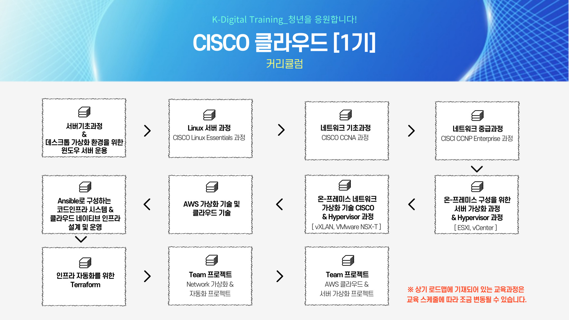 03. 네트워크 기초과정 • CISCO CCNA과정 04. 네트워크 중급과정 • CISCO CCNP Enterprise 과정 |