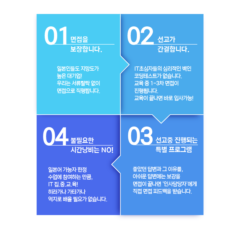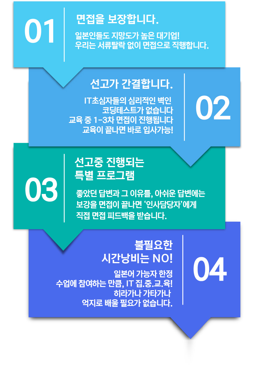 • 일본어 교육 없이 IT 교육만 집중 진행 됩니다.