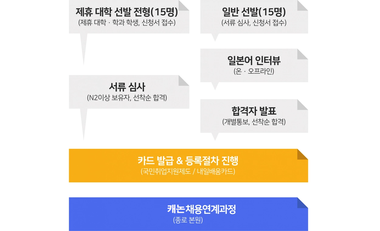 • 제휴 대학 학생들 대상으로 정원의 절반에 한하여 JLPT N2 이상 자격증 보유자는 인터뷰 면제