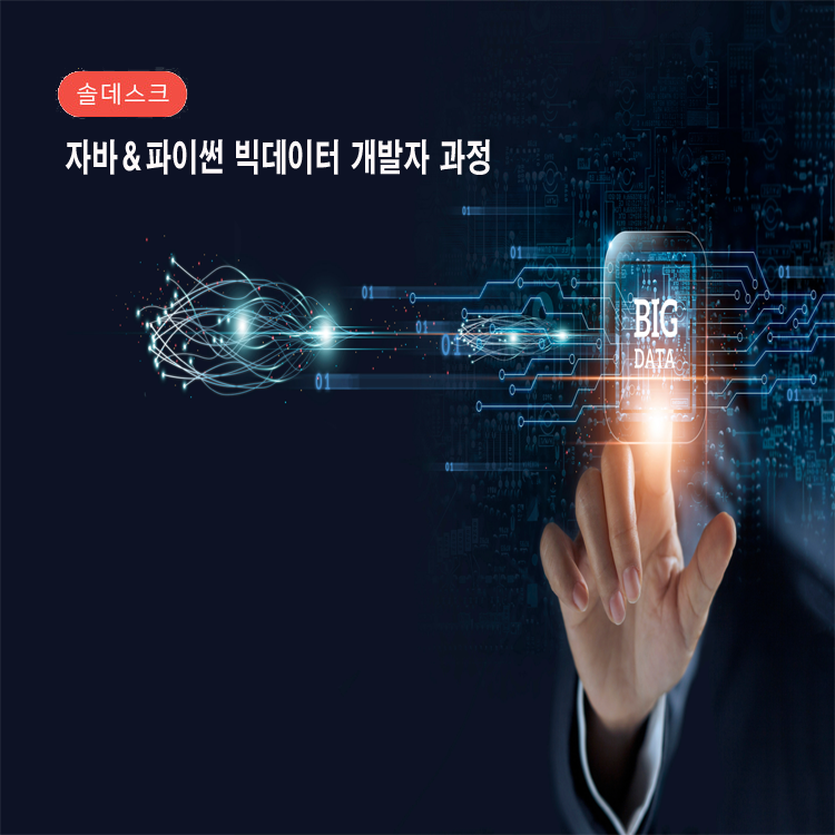 어떤 교육 인가요? | 자바는 무엇인가요? 자바(Java)는 자바로 기술된 프로그램 개발 및 실행 할 수 있는 소프트웨어를 뜻합니다. 웹 / 애플리케이션 코딩에 널리 사용되는 프로그래밍 언어로서, 오늘날 수백만 개의 Java 애플리케이션이 사용되고 있습니다. 어떤 분야로 취업할까? • 웹(Web)개발자는 웹 페이지, 웹 사이트 등 웹 디자인부터 인터페이스 · 정보 설계 뿐만 아니라 프로젝트 관리와 웹 서버 및 DB관리, 코딩 alv 프로그래밍 기술을 통하여, Back-end & Front-end 기술을 사용하는 전문가입니다. • 빅데이터 분석가는 인터넷, SNS, 스마트폰 등 저장 데이터, 나아가 세상에 존재하는 모든 정보를 빅데이터라 부르고, 세상에 존재하는 방대한 빅데이터를 분석해 높은 가치의 정보로 탈바꿈 시켜 만들어내는 전문가라고 할 수 있습니다. • 인공지능(AI) 개발자는 딥러닝에 대한 이해를 바탕으로 인공지능 제품이나 서비스를 구현하는 개발자로서, 뛰어난 프로그래밍 역량이 요구되며 논문 작성이나, 연구 자체를 이용하여 궁극적으로 효율적인 모델과 시스템을 구축하는 전문가입니다. | |||||||||||||||||||||