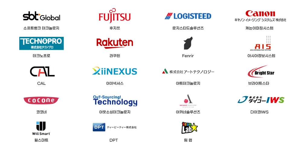 • 히타치 물류 소프트웨어, 테크노프로,아웃소싱테크놀로지, CAL, MTI, CTC그룹 등 대기업 및 중견기업 다수