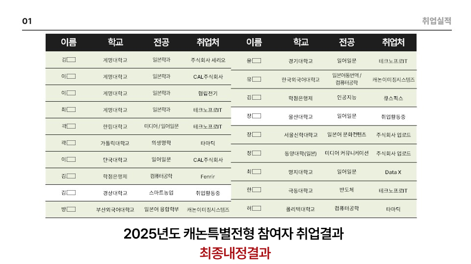 1. 참가자 전원 캐논이미징시스템즈 면접보장 |